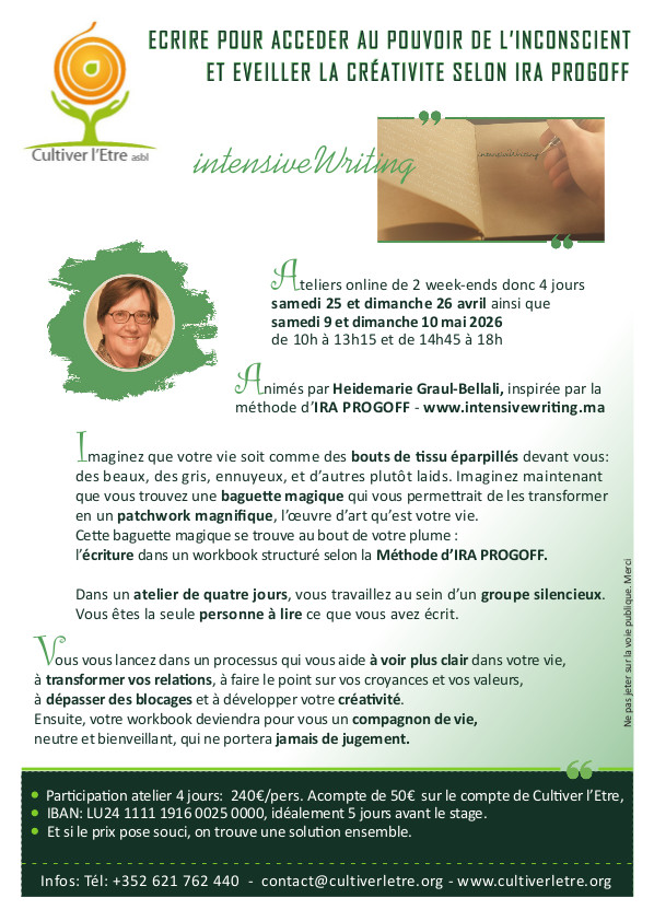 Organisateur et/ou animateur: Heidemarie Graul-Bellali – Cultiver l’Etre asbl